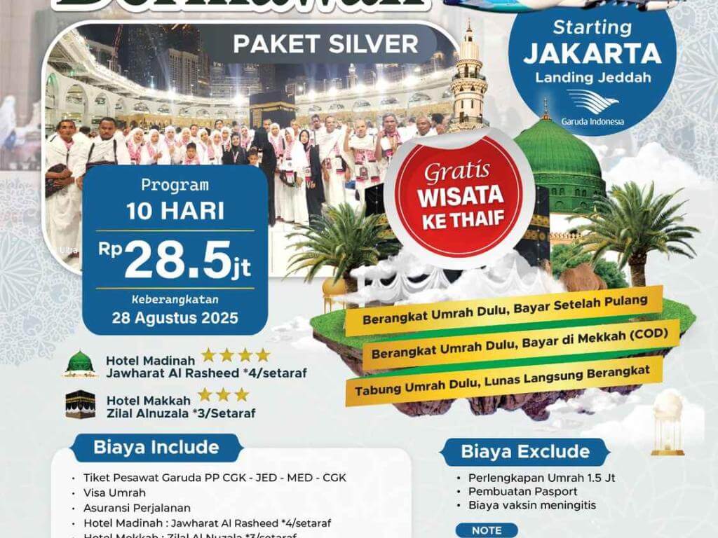 - DP 5 Jt/Pax untuk Program COD (bayar setelah setelah tiba di Tanah Suci).