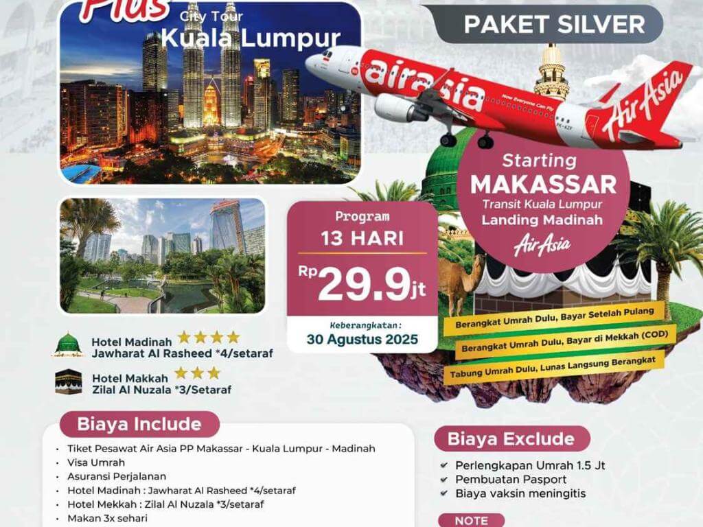 - • Tiket Pesawat Air Asia PP Makasar - Kuala Lumput - Madinah
