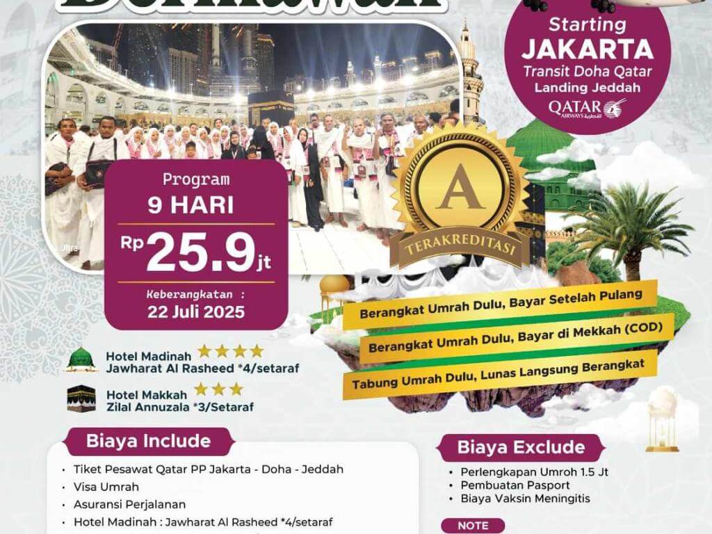 - DP 5 Jt/Pax untuk Program COD (bayar setelah setelah tiba di Tanah Suci).