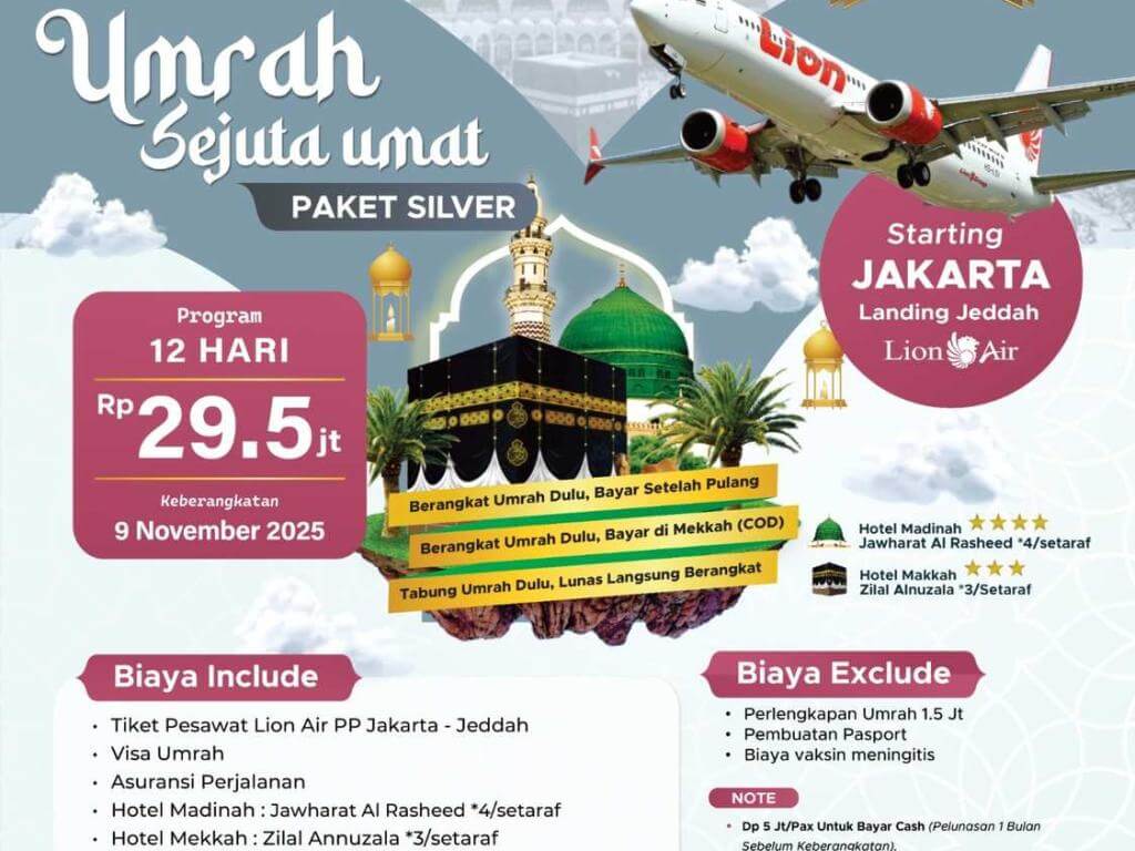 - DP 5 Jt/Pax untuk Program COD (bayar setelah setelah tiba di Tanah Suci).