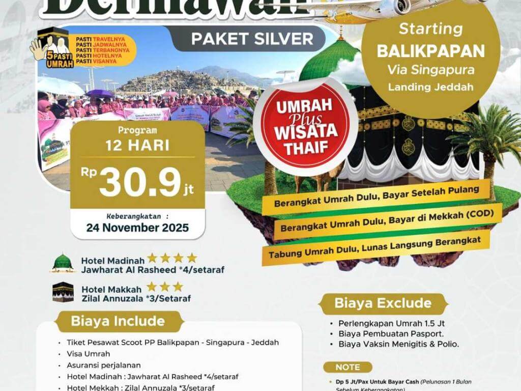 - DP 5 Jt/Pax untuk Program COD (bayar setelah setelah tiba di Tanah Suci).