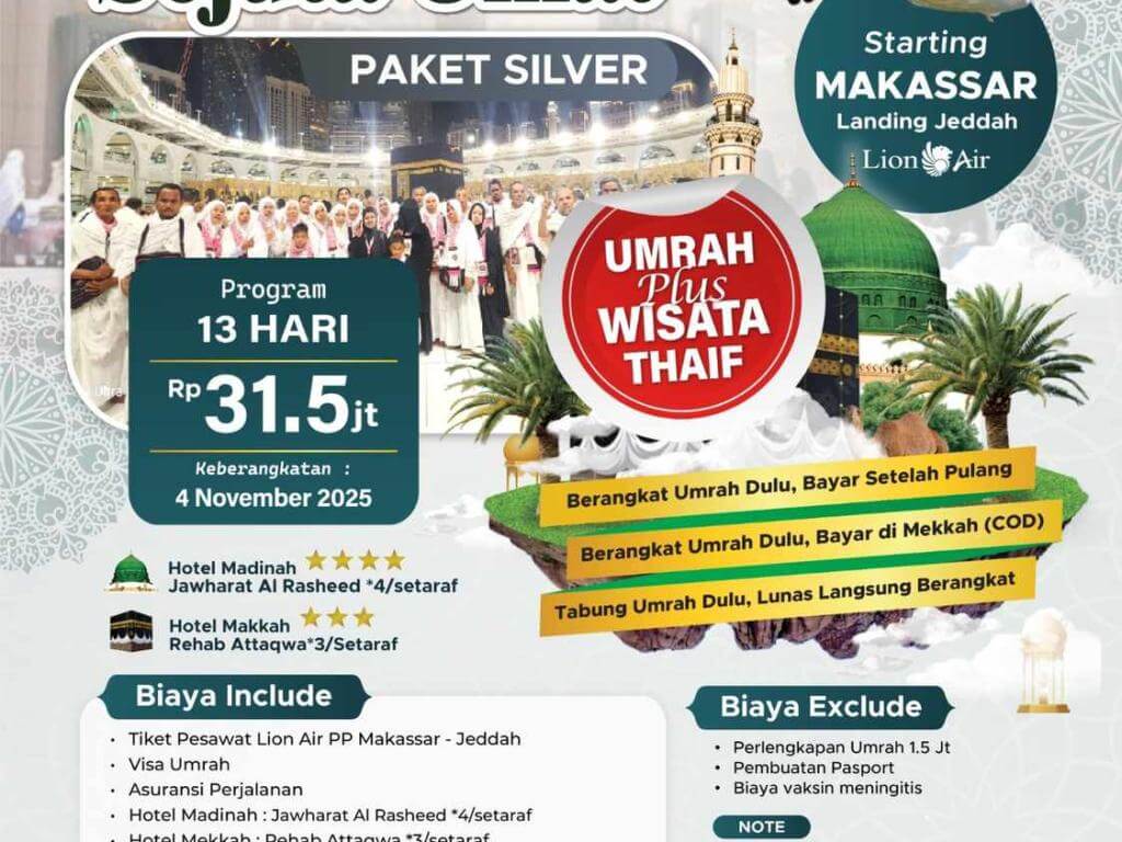 - DP 5 Jt/Pax untuk Program COD (bayar setelah setelah tiba di Tanah Suci).