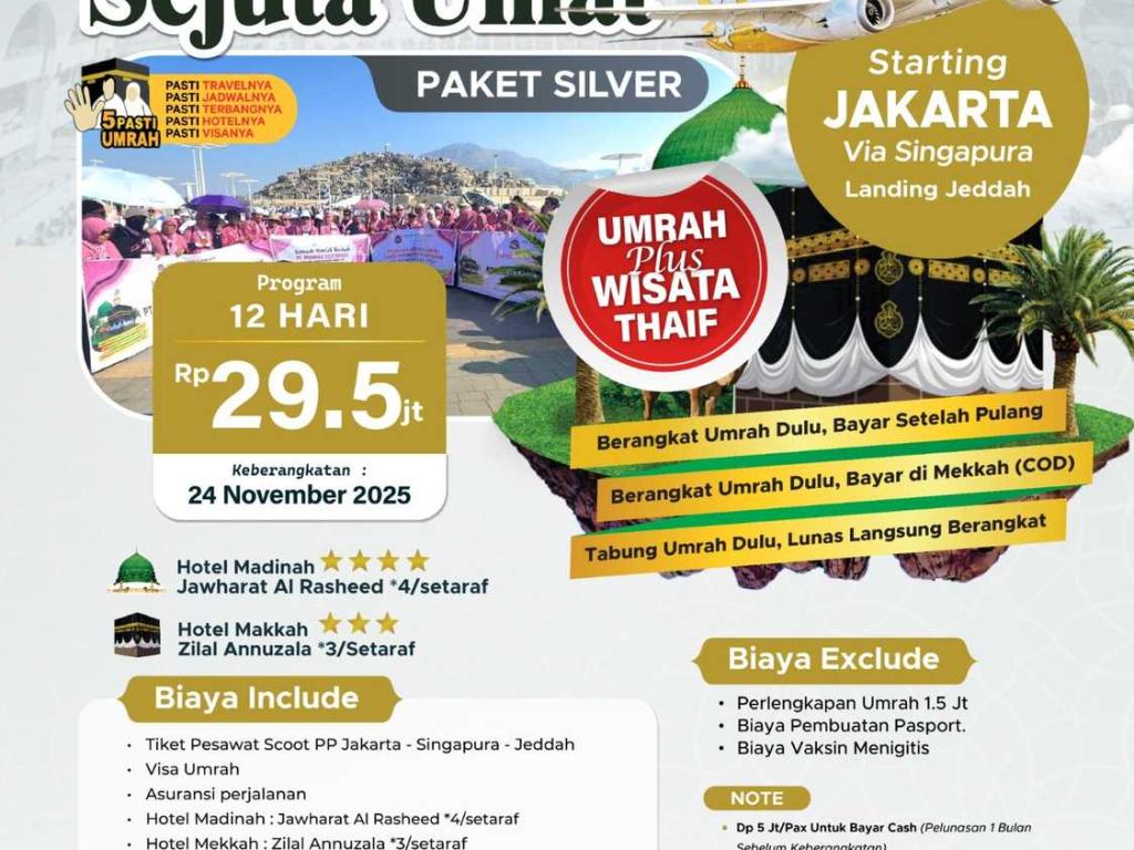 - DP 5 Jt/Pax untuk Program COD (bayar setelah setelah tiba di Tanah Suci).