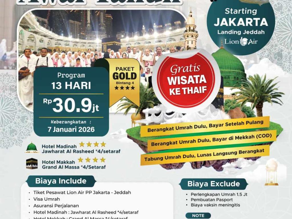 - DP 5 Jt/Pax untuk Program COD (bayar setelah setelah tiba di Tanah Suci).