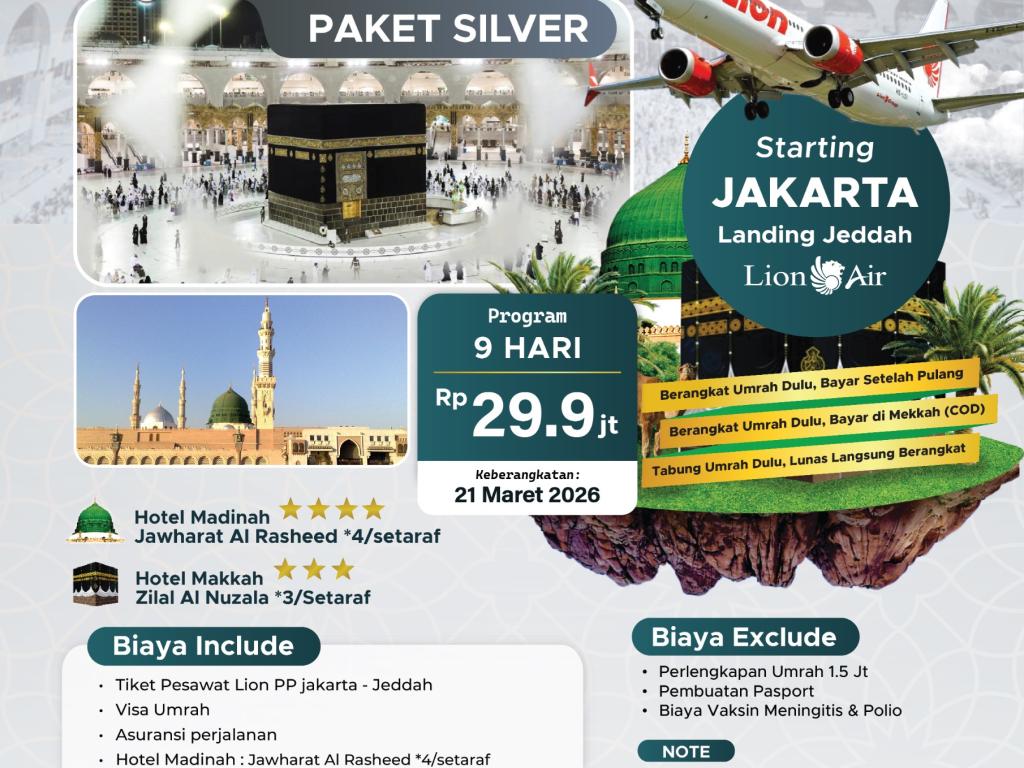 - DP 5 Jt/Pax untuk Program COD (bayar setelah setelah tiba di Tanah Suci).